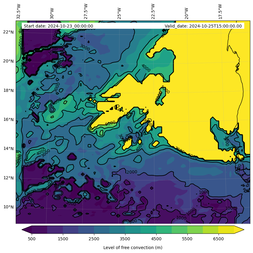 - Level of free convection (m)