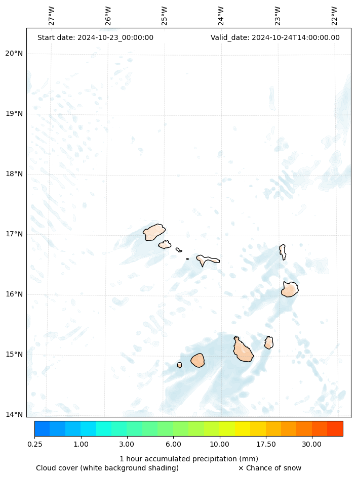 - Snow mixing ratio (g kg¯¹)