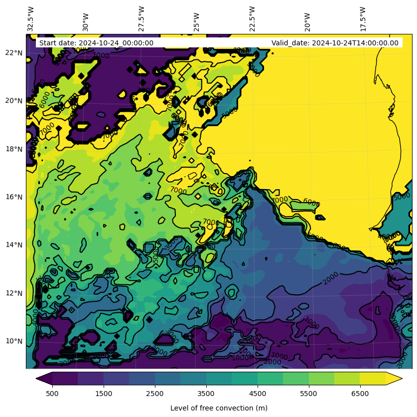 - Level of free convection (m)