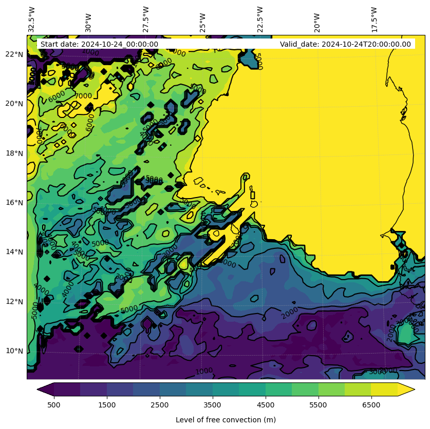 - Level of free convection (m)