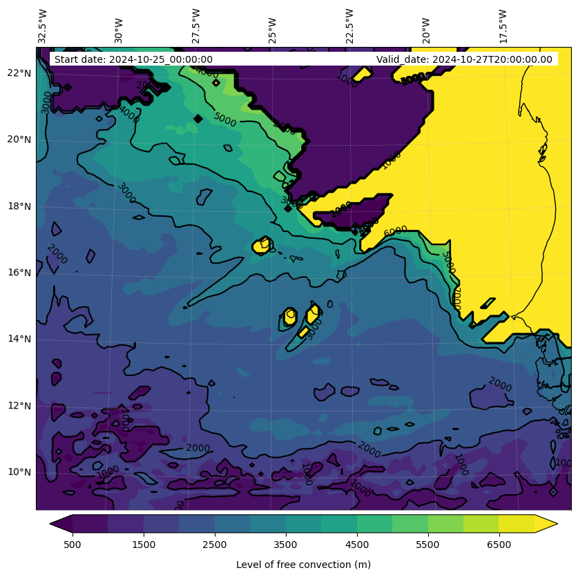 - Level of free convection (m)