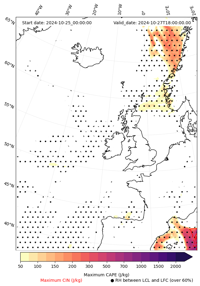 • Maximum CAPE (J/Kg)