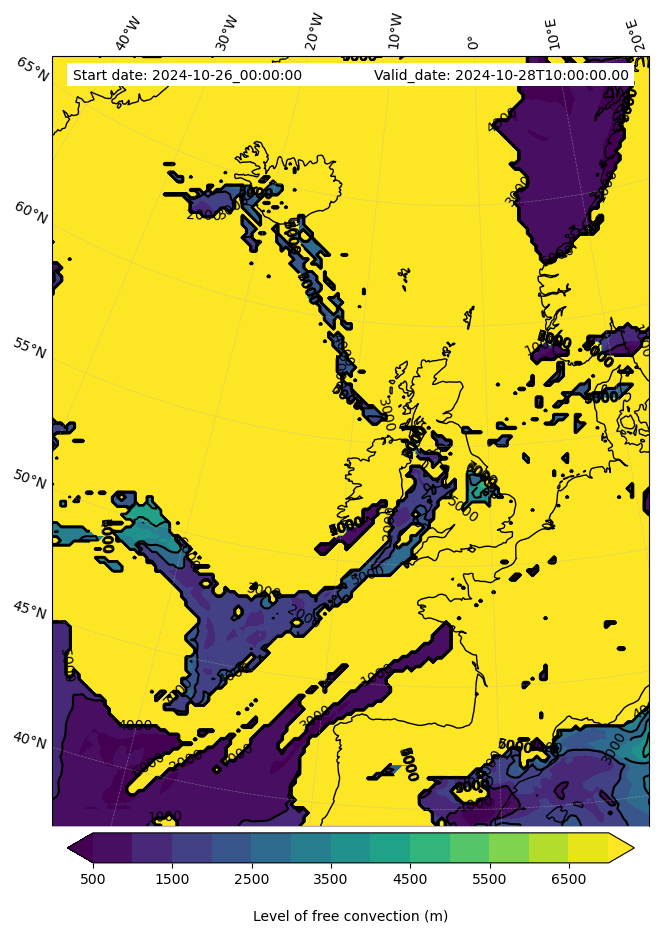 - Level of free convection (m)
