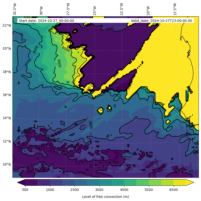 - Level of free convection (m)