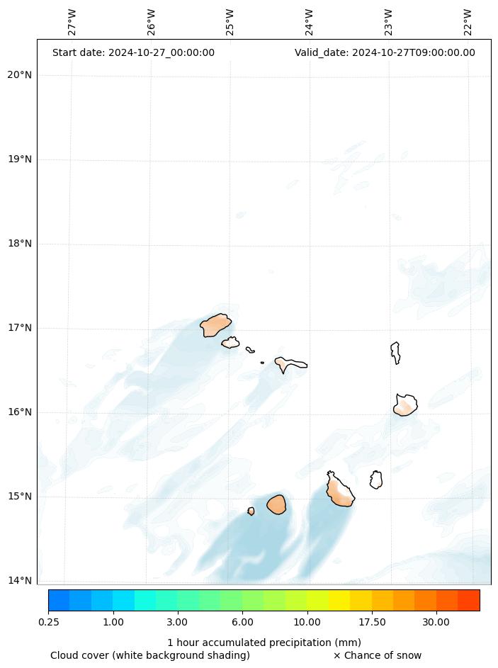 - Snow mixing ratio (g kg¯¹)