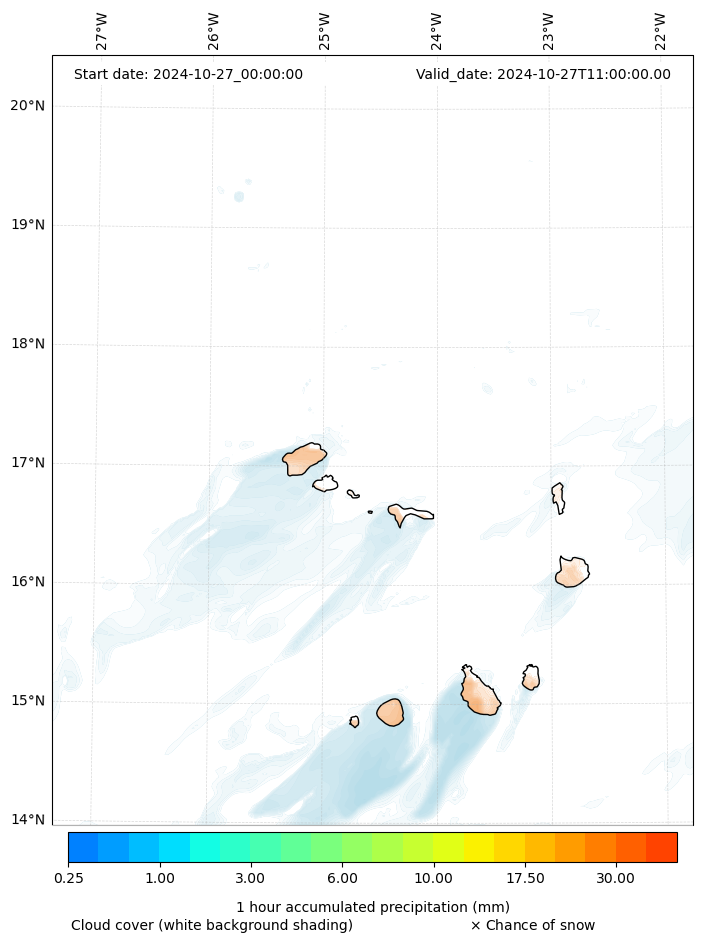 - Snow mixing ratio (g kg¯¹)