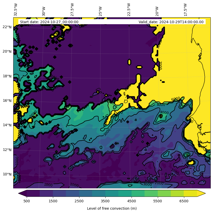 - Level of free convection (m)