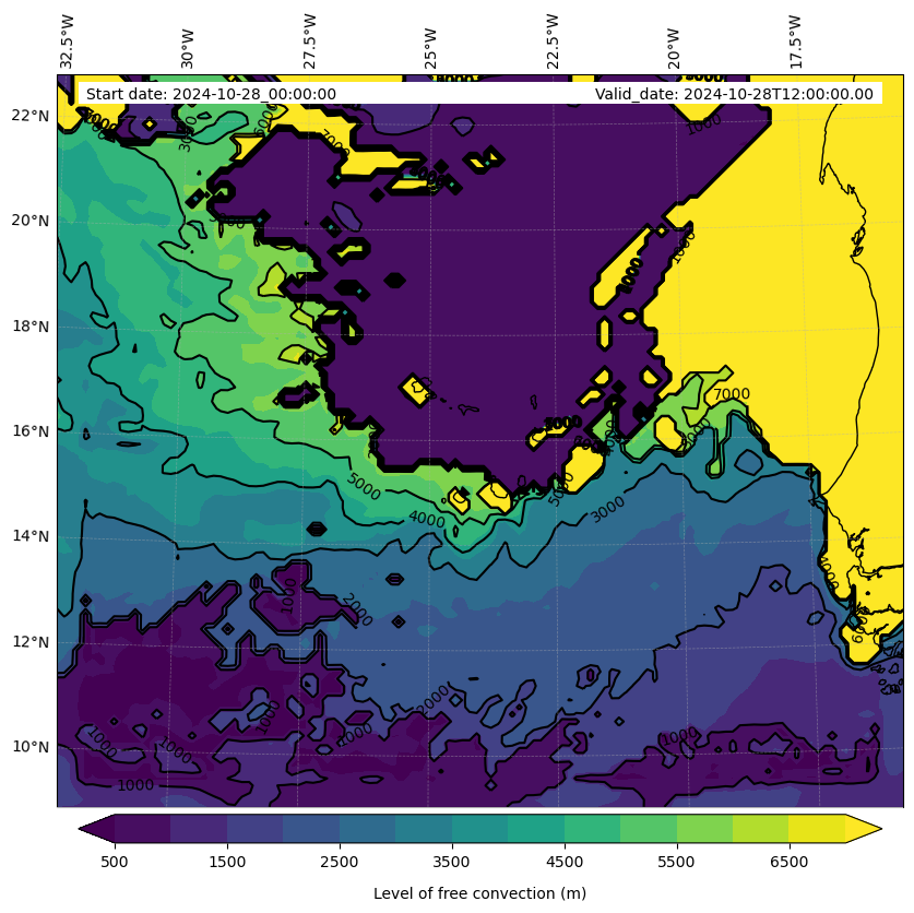 - Level of free convection (m)