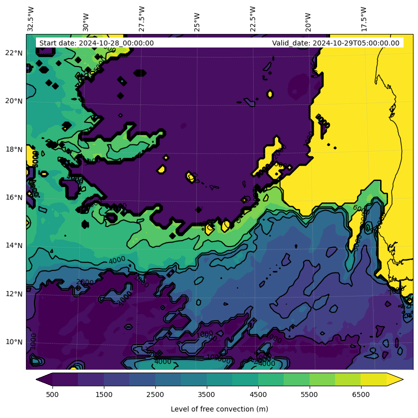 - Level of free convection (m)