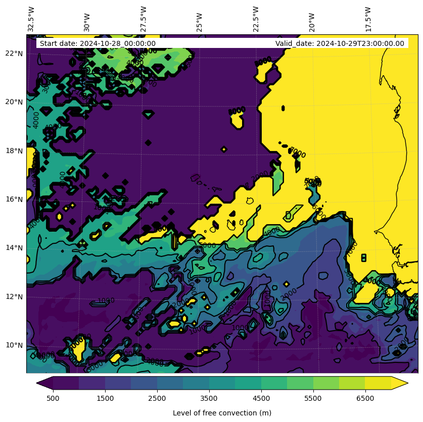 - Level of free convection (m)