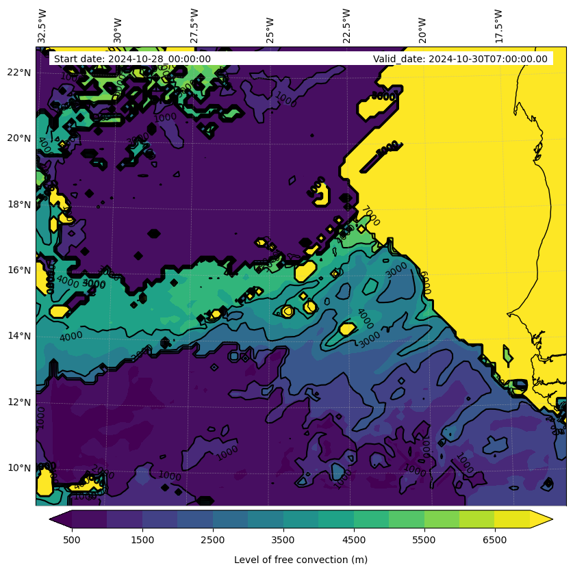 - Level of free convection (m)