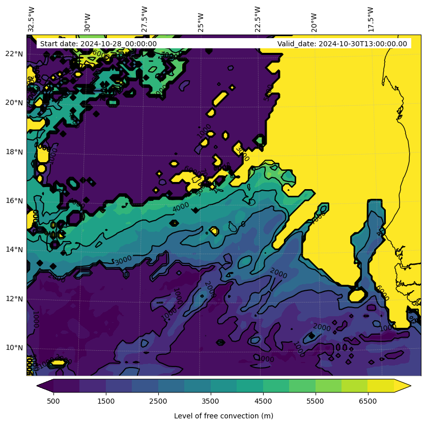 - Level of free convection (m)