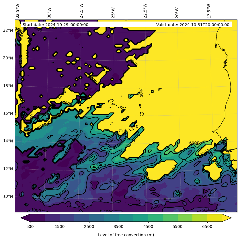 - Level of free convection (m)
