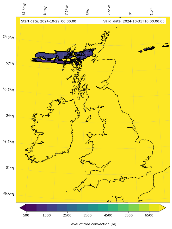 - Level of free convection (m)