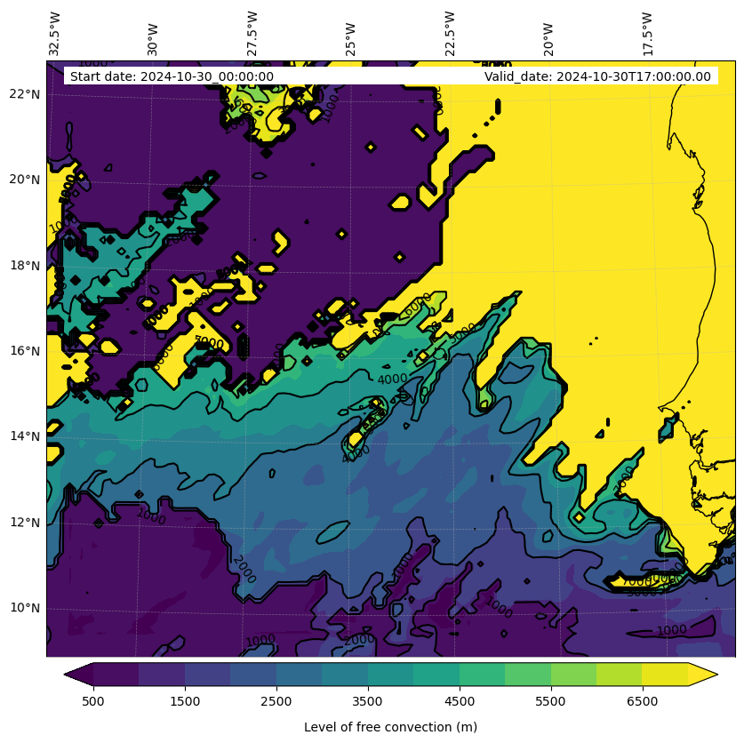 - Level of free convection (m)