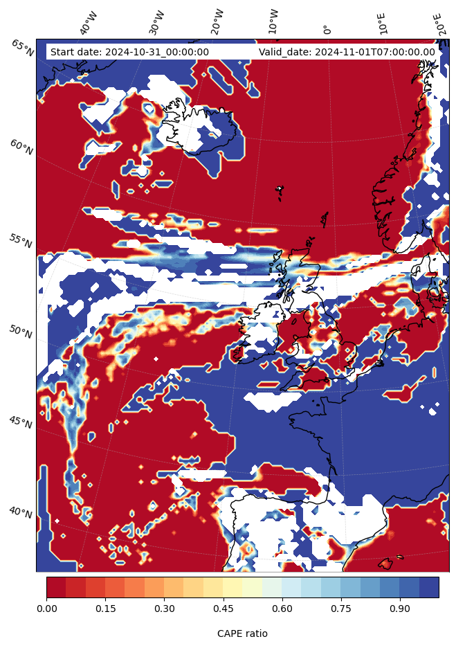 - Maximum CAPE (J/Kg)