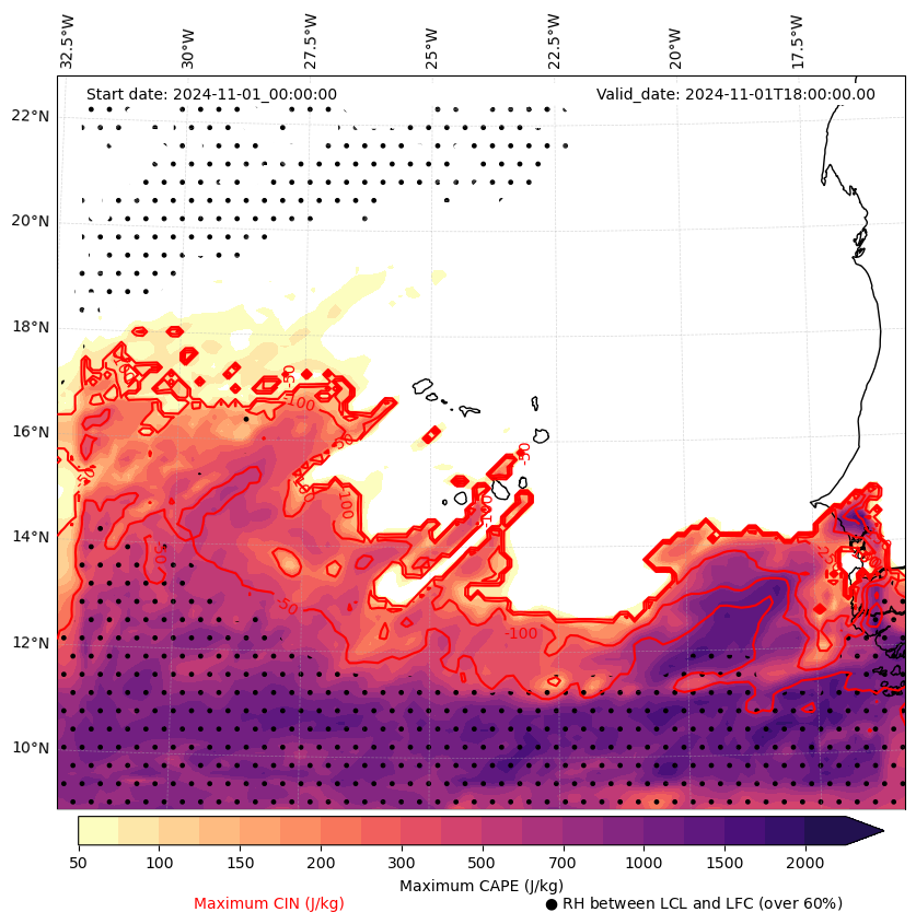 • Maximum CAPE (J/Kg)