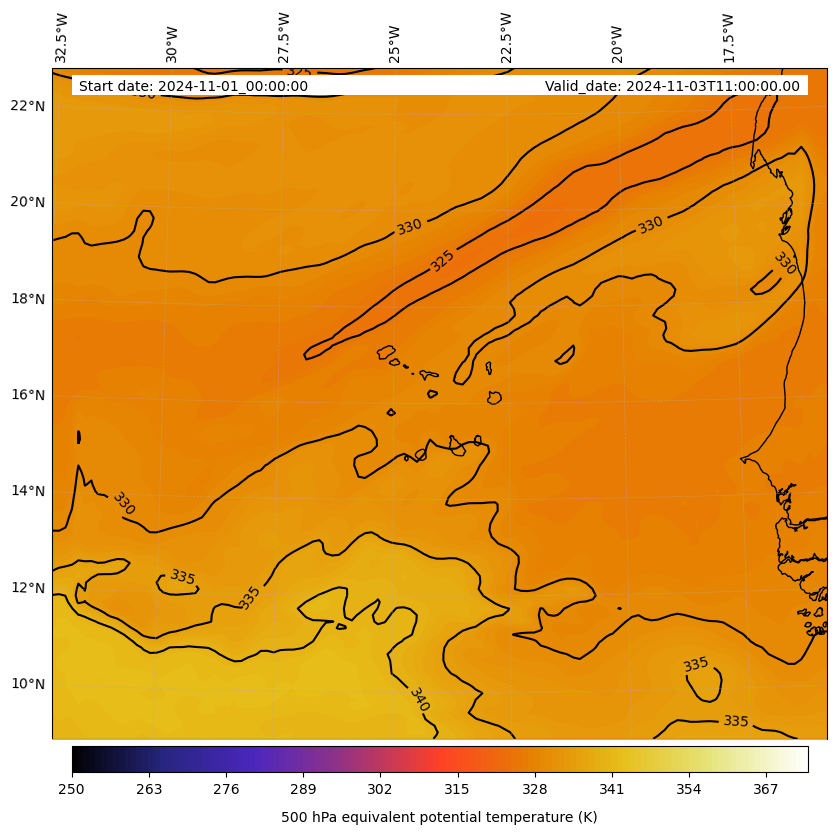 - Equivalent Potential Temperature (K)