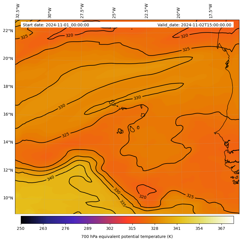 - Equivalent Potential Temperature (K)
