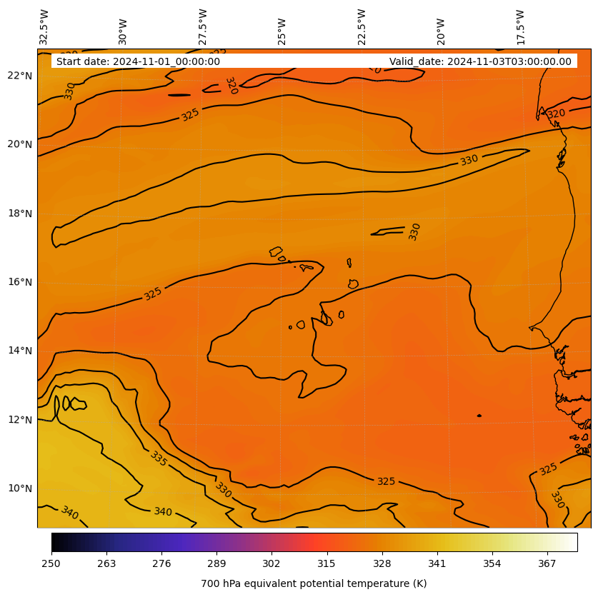 - Equivalent Potential Temperature (K)