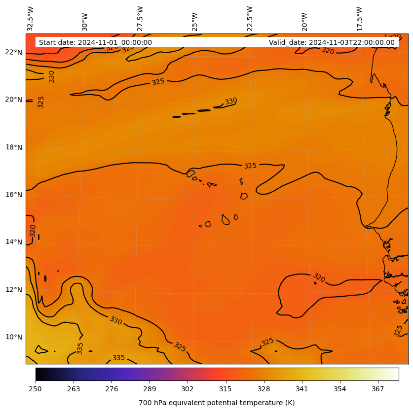 - Equivalent Potential Temperature (K)