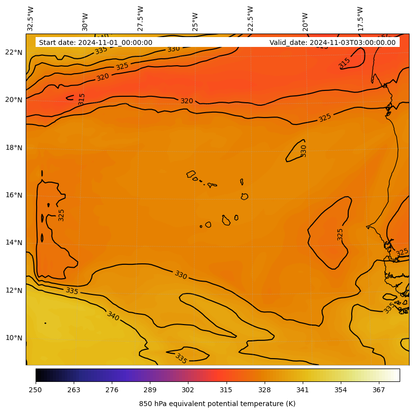 - Equivalent Potential Temperature (K)