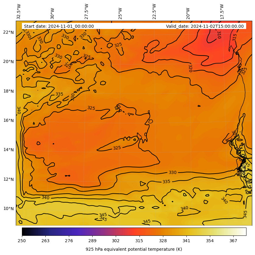 - Equivalent Potential Temperature (K)