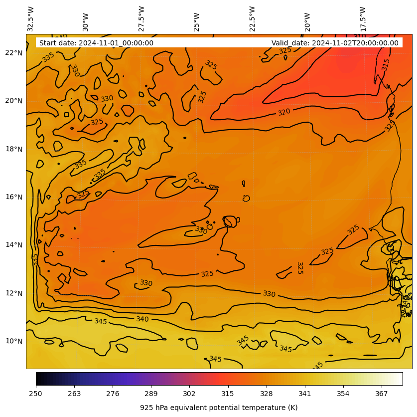 - Equivalent Potential Temperature (K)