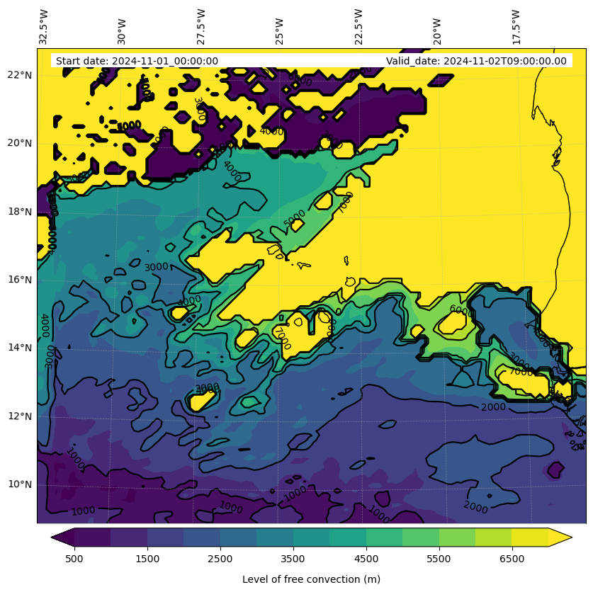 - Level of free convection (m)