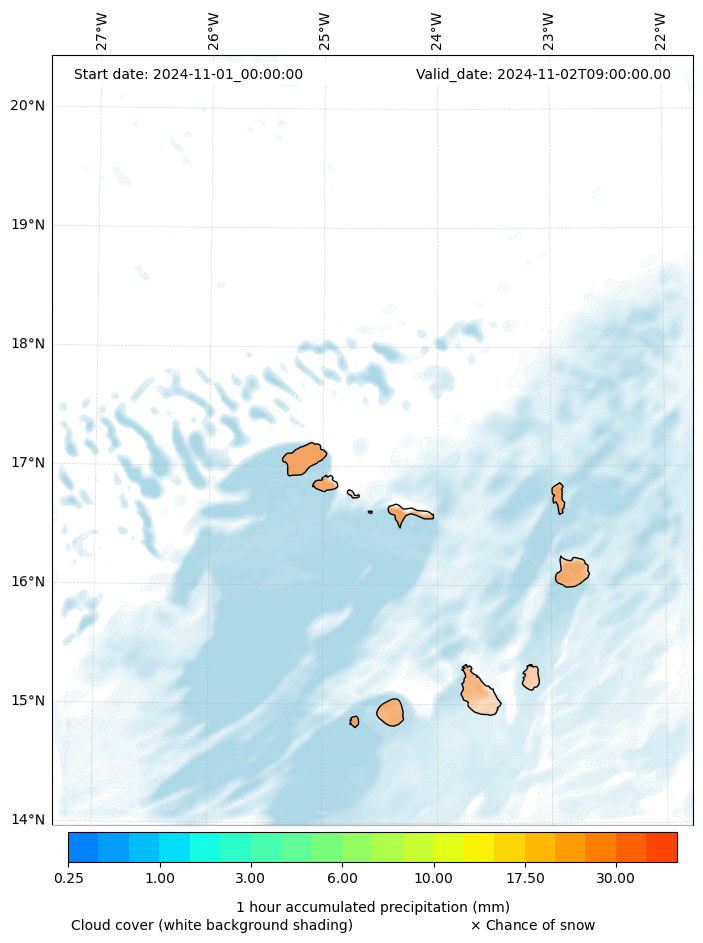 - Snow mixing ratio (g kg¯¹)