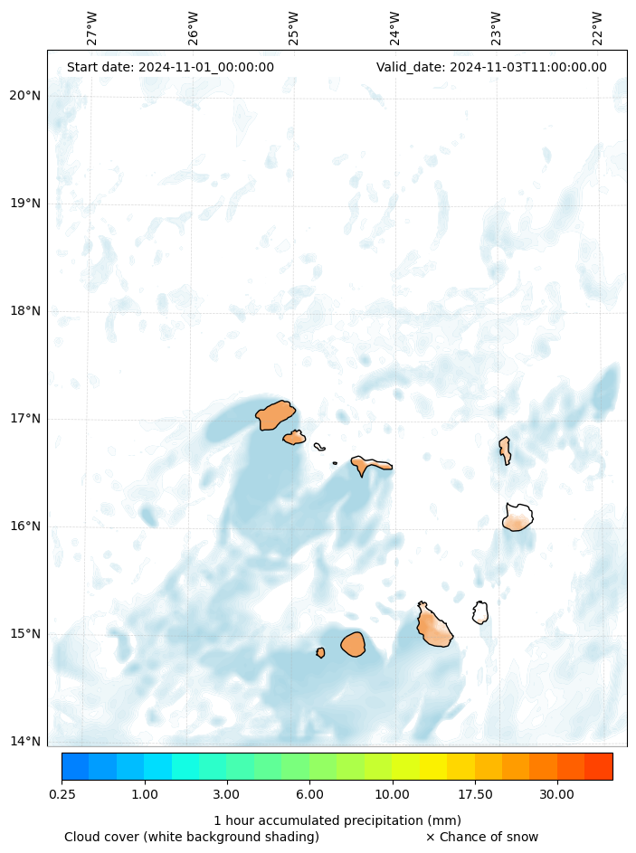 - Snow mixing ratio (g kg¯¹)