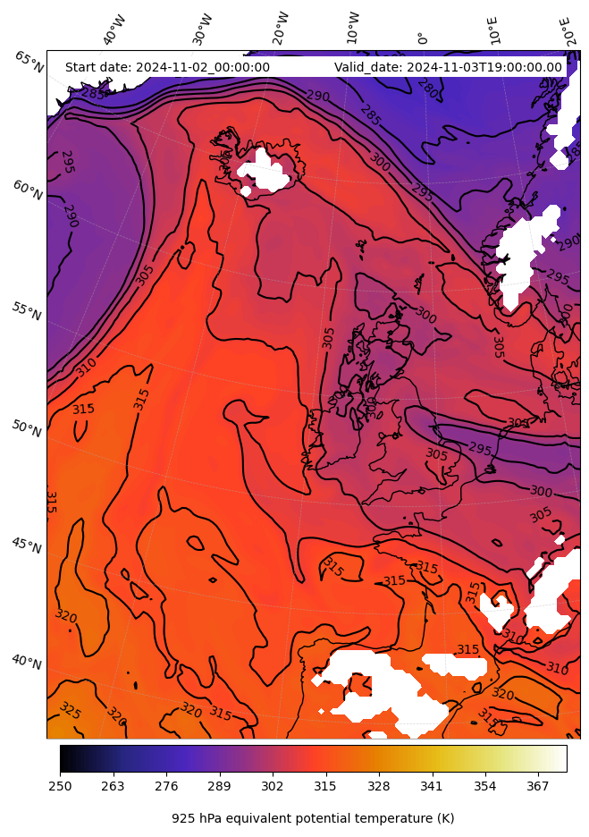 - Equivalent Potential Temperature (K)