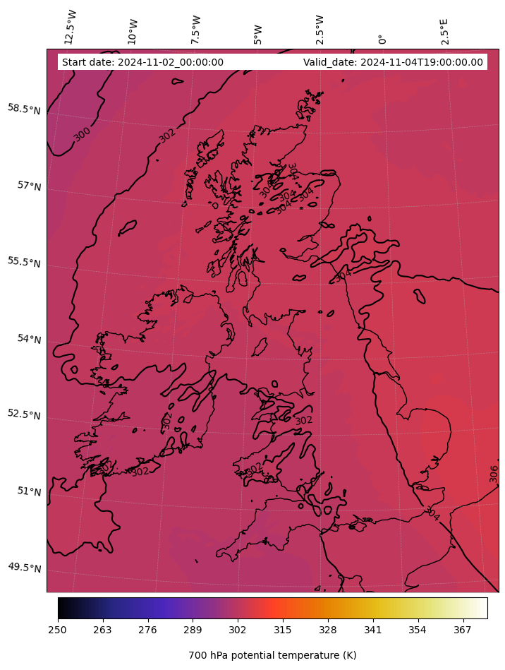 - Equivalent Potential Temperature (K)