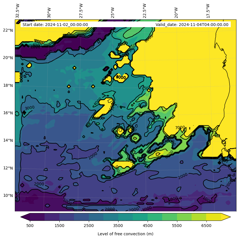 - Level of free convection (m)