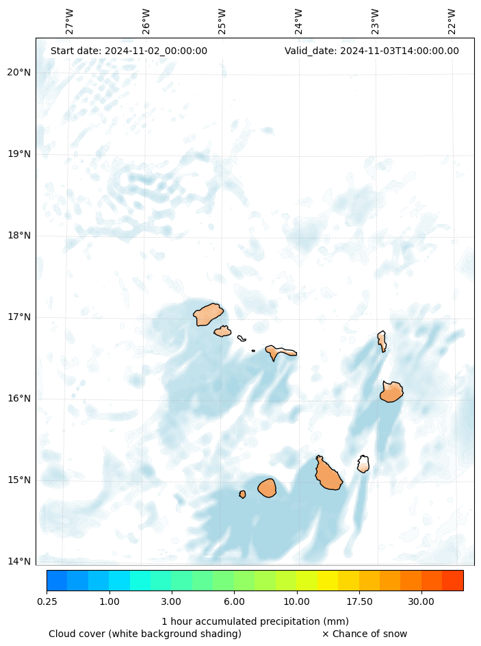 - Snow mixing ratio (g kg¯¹)