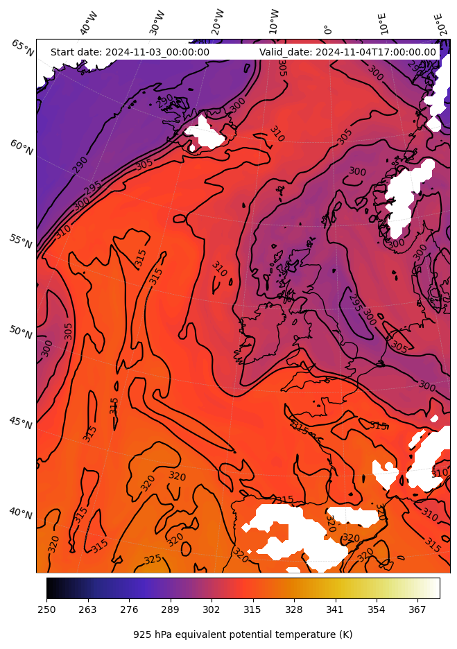 - Equivalent Potential Temperature (K)