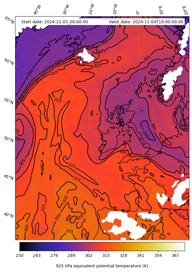 - Equivalent Potential Temperature (K)
