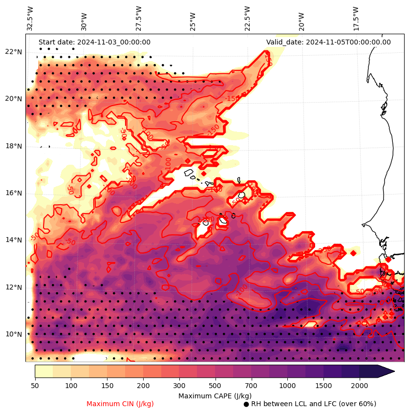 - Maximum CAPE (J/Kg)