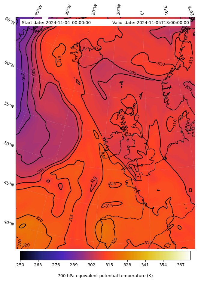 - Equivalent Potential Temperature (K)