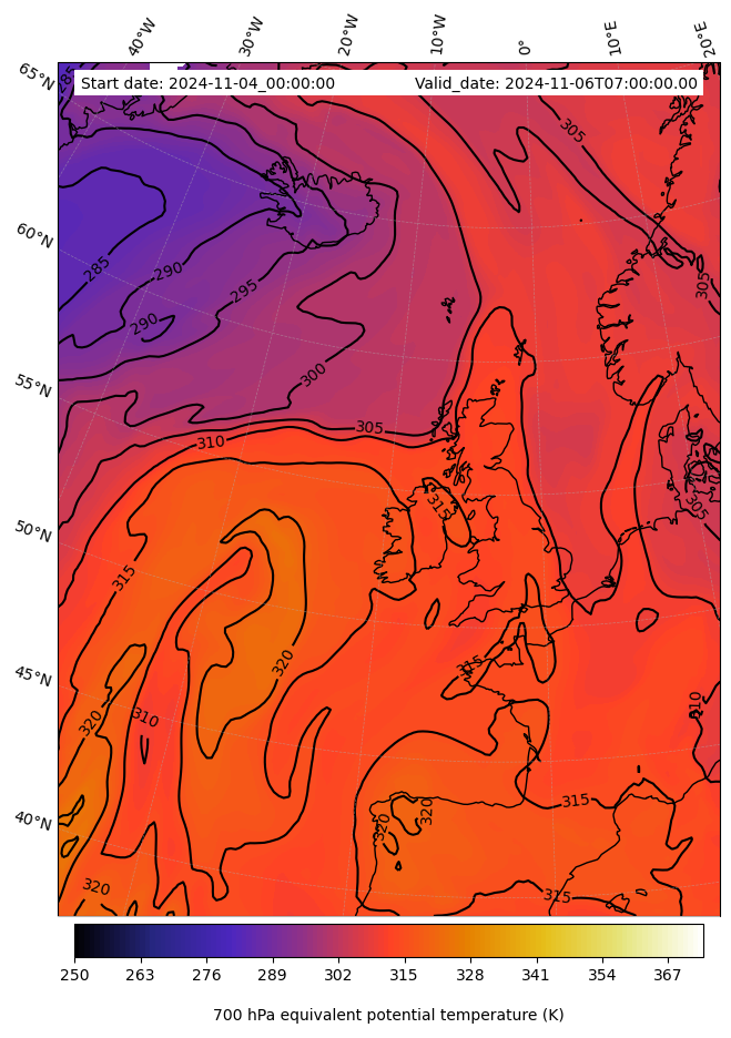 - Equivalent Potential Temperature (K)