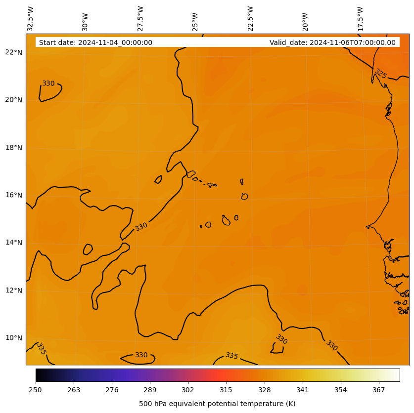 - Equivalent Potential Temperature (K)
