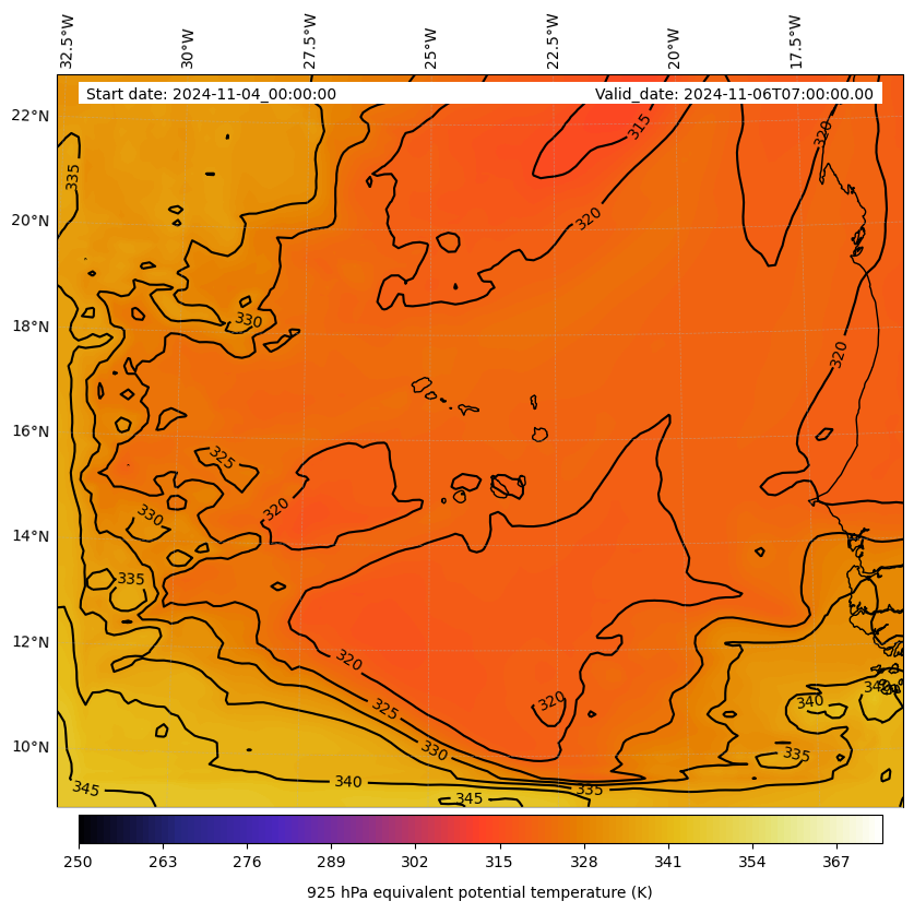 - Equivalent Potential Temperature (K)