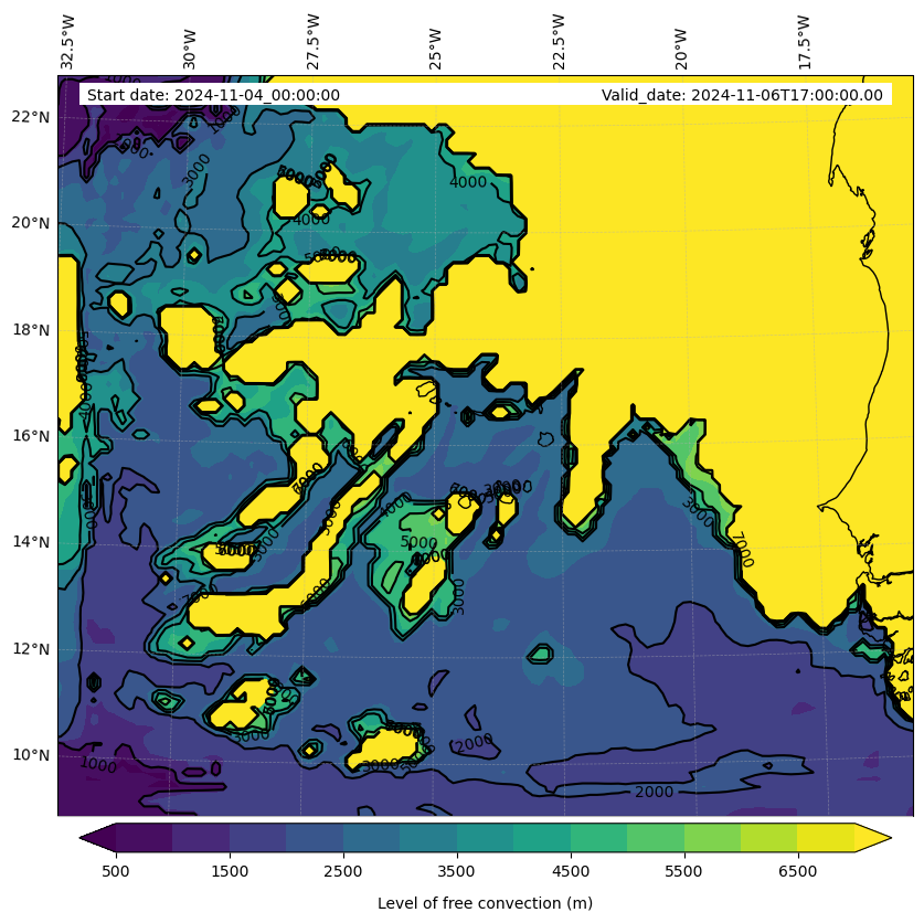 - Level of free convection (m)