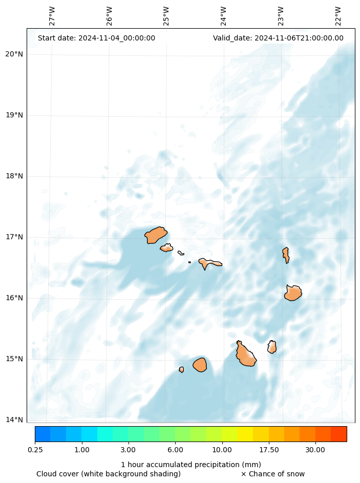- Snow mixing ratio (g kg¯¹)
