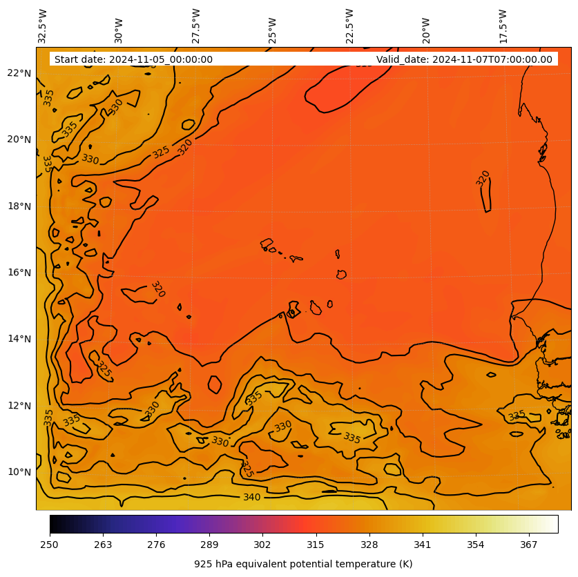 - Equivalent Potential Temperature (K)
