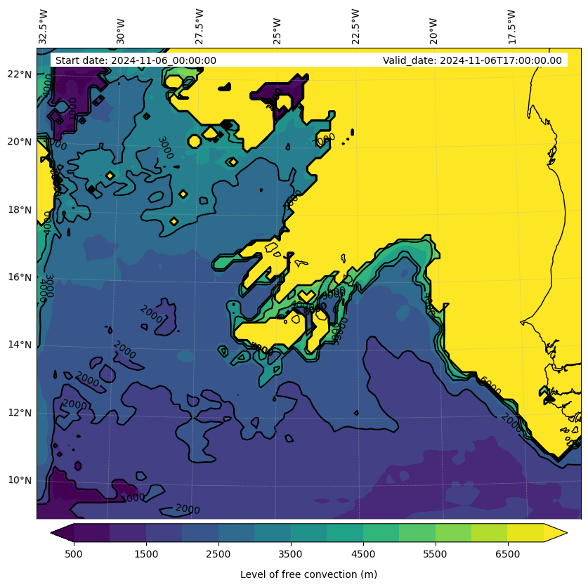 - Level of free convection (m)