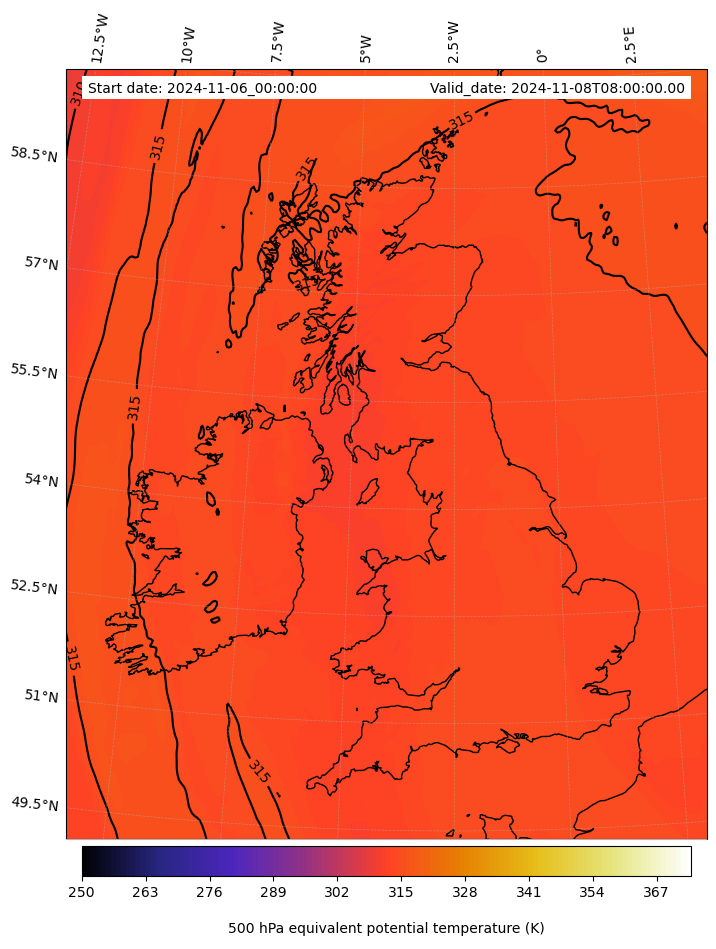 - Equivalent Potential Temperature (K)