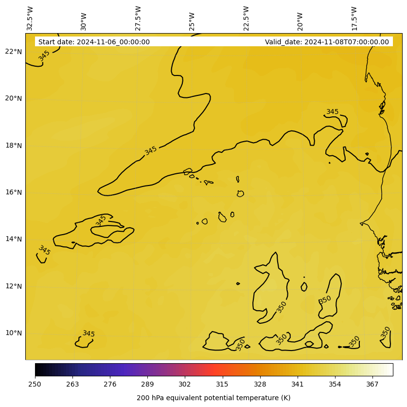 - Equivalent Potential Temperature (K)