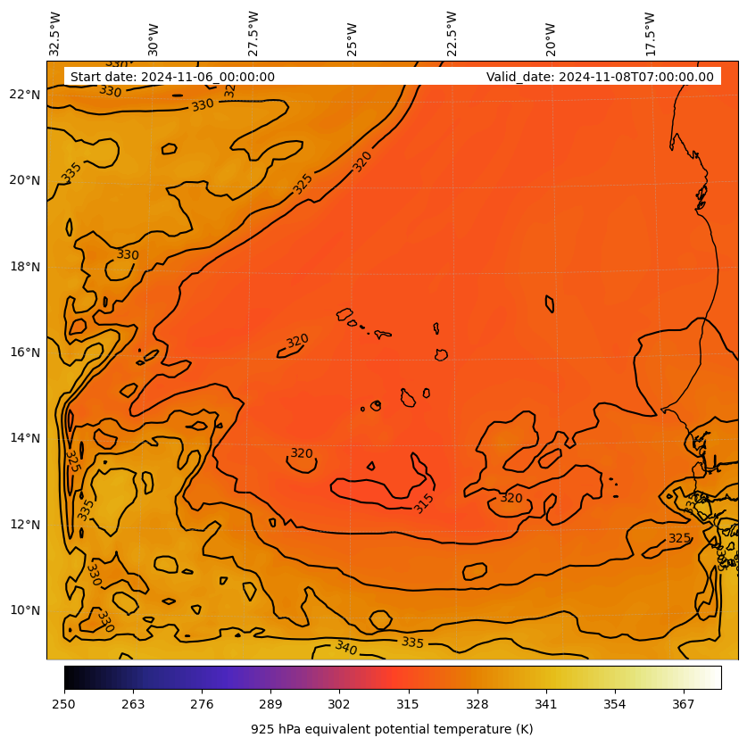- Equivalent Potential Temperature (K)