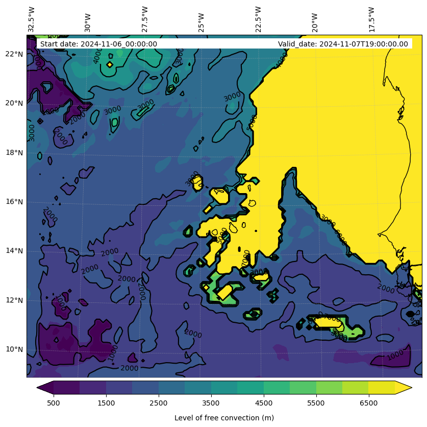 • Level of free convection (m)